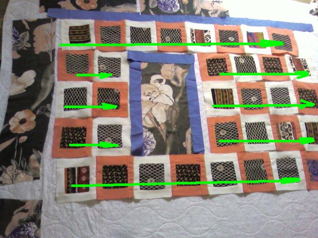 Рассказать как вшить большую картинку-эпизод в полотнище из маленьких квадратиков: