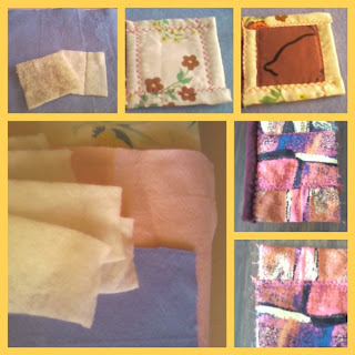 Брала каждый мягкий квадратик, заворачивала его в полосу ткани так, чтобы концы перекрывали друг друга, отрезала лишнее и один кончик ткани подгибала. По подгибу прострачивала насквозь швом «зиг-заг». Причем не особенно следила где проходит шов — это совершенно не важно в данном случае.