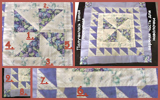Описать последовательность сборки лоскутного верха для подарочной наволочки с центральным рисунком «Мельница» и отделочными полосками из рисунка «двухцветный квадрат»?